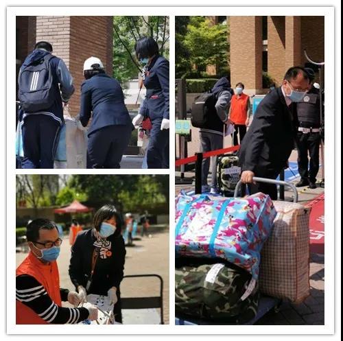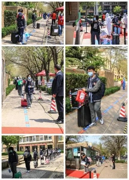 4月13日,開學(xué)第一天,全校初三學(xué)生在學(xué)校志愿者和珠江物業(yè)服務(wù)團(tuán)隊的引導(dǎo)下,在校門口排好隊,前后保持一米距離,有序進(jìn)入測溫區(qū),刷卡進(jìn)校。秩序組維持道路交通秩序,避免交叉擁堵,確保學(xué)生安全、平穩(wěn)、有序地進(jìn)入校園。入校時,行李組會將學(xué)生們的大件物品送至學(xué)生宿舍,讓他們沒有后顧之憂。